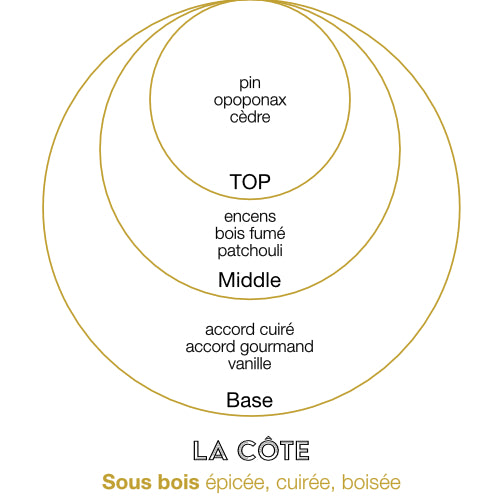 - Pyramide olfactive de fond patchouli/ambre gris/mousse